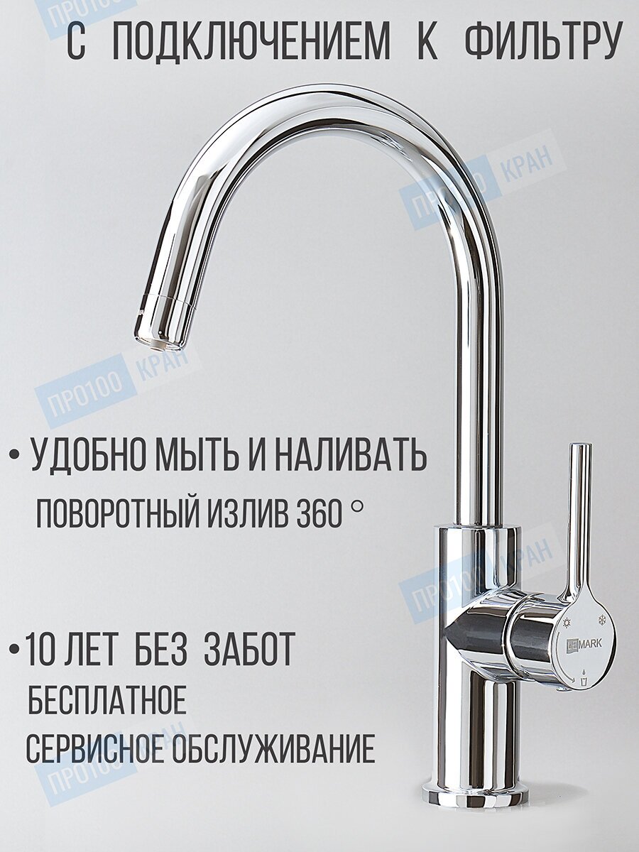 Смеситель для кухни с поворотным изливом и подключением к фильтру питьевой воды (Lemark Comfort LM3073C), гибкая подводка 1/2x1/2 в комплекте.