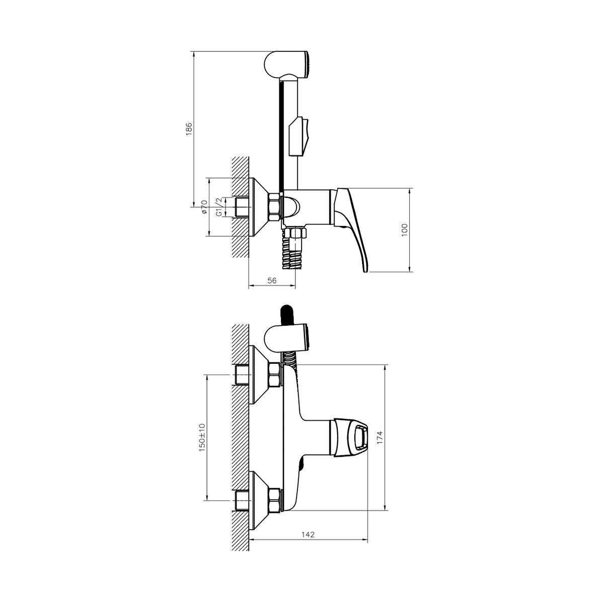 Смеситель для душа Decoroom с гигиеническим душем (DR21058)