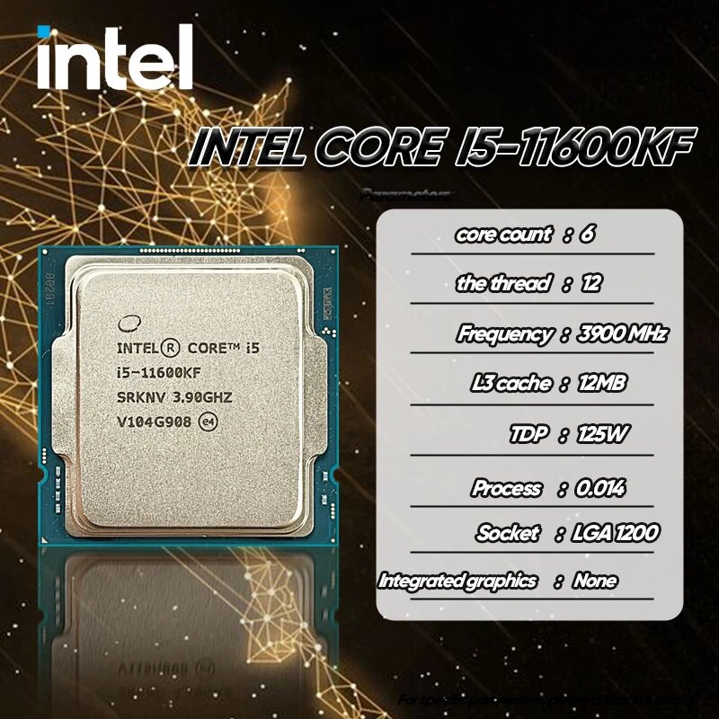 Core i5-11600KF OEM (Rocket Lake, 14nm, C6/T12, Base 3,90GHz, Turbo 4,90GHz, Without Graphics, L3 12Mb, TDP 125W, w/o cooler, S1200)