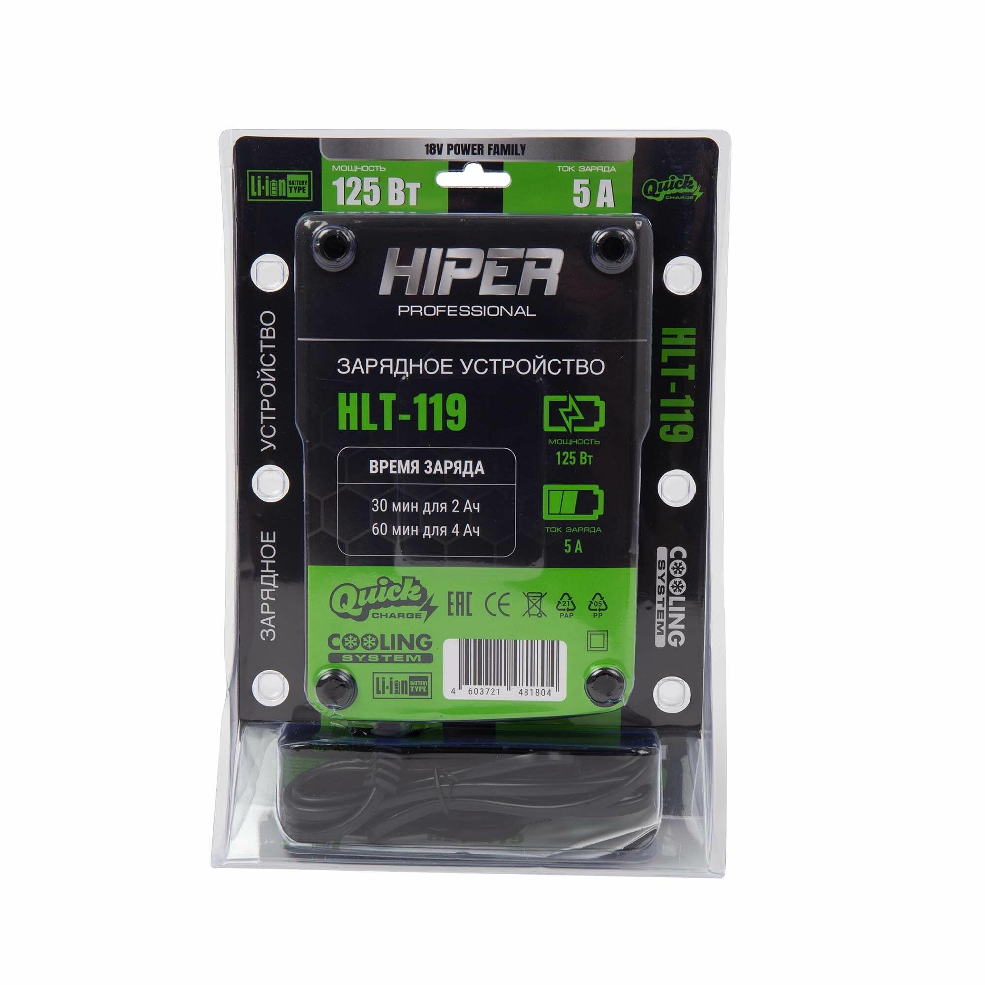 Зарядное устройство HIPER HLT-119, 125Вт, ток заряда 5А, двойная изоляция, система охлаждения АКБ, зеленый интересное: