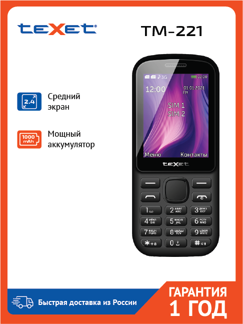 Мобильный телефон teXet TM-221, черно-красный интересное: