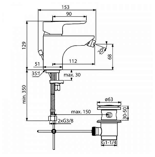 Смеситель для биде Ideal Standard CeraPlan III - B0713AA (донный клапан, цвет хром)