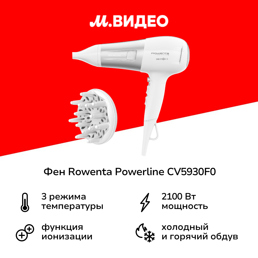Фен Rowenta Powerline CV5930F0, белый интересное: