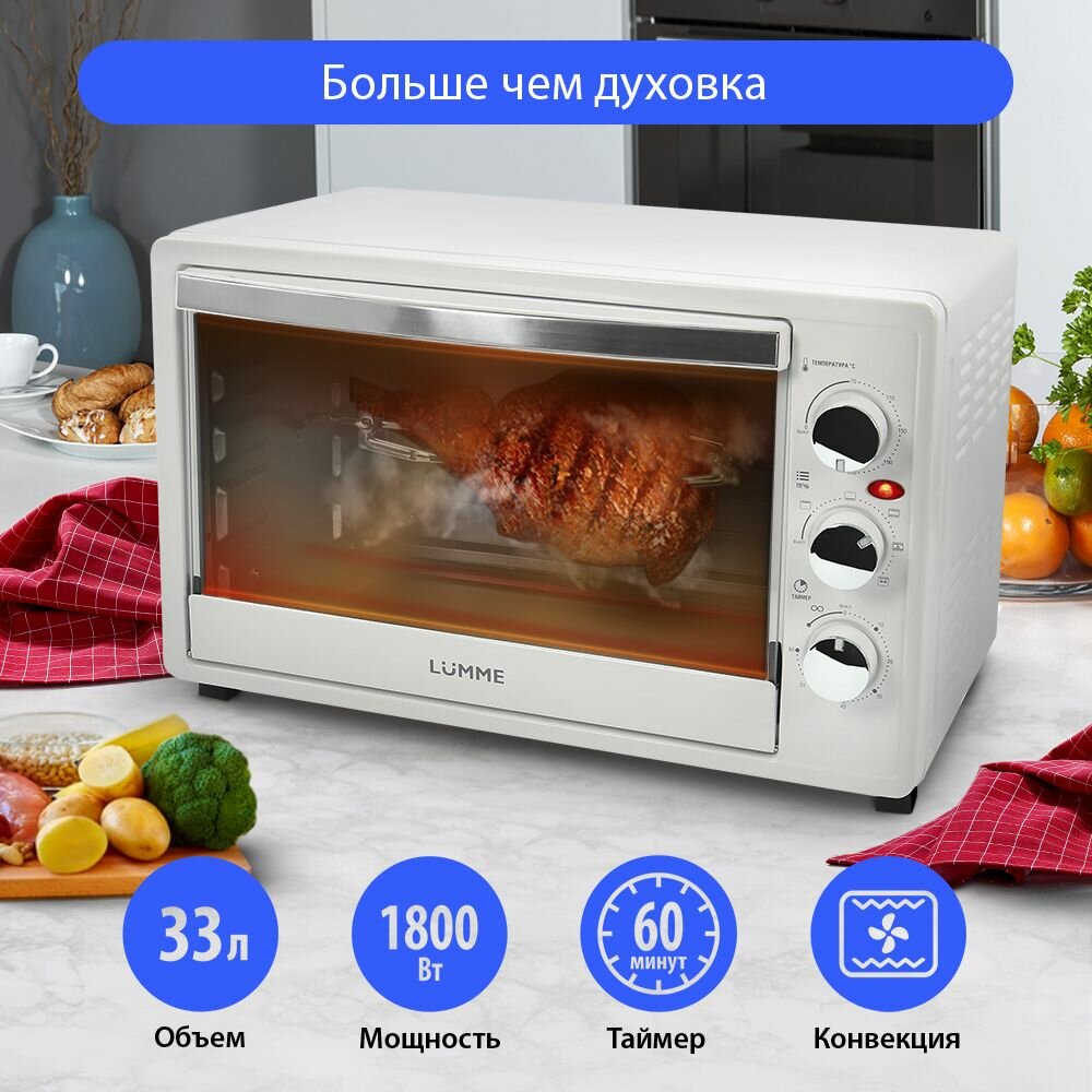 Купить LUMME LU-1710 белый жемчуг Мини-печь 33 литра (конвекция+вертел+гриль)