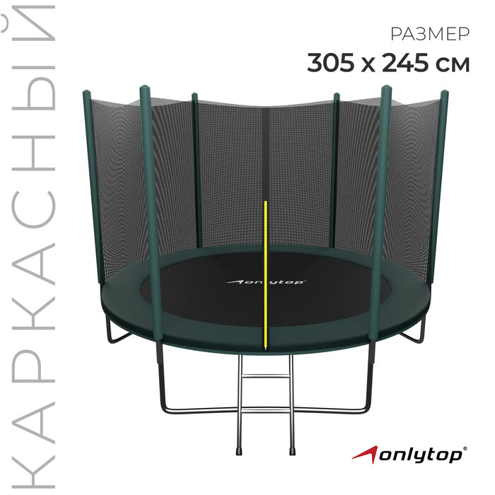 Батут 305 см, высота сетки h=173 см + лестница, цвет зеленый ONLITOP 5392849 . интересное: