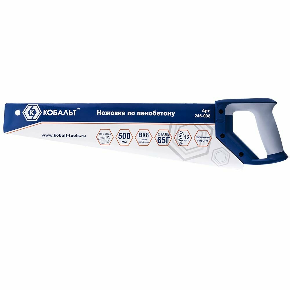 Кобальт Ножовка по пенобетону 500 мм, 1 TPI, тефлоновое покрытие твердосплавные напайки на зубья, двухкомпонентная рукоятка 246-098