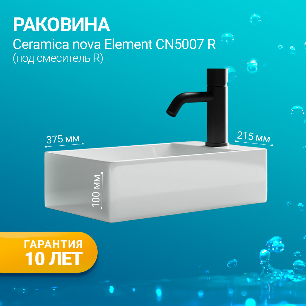 Раковина 37,5х21,5х10 CERAMICA NOVA ELEMENT отверстие под смеситель справа. CN5007
