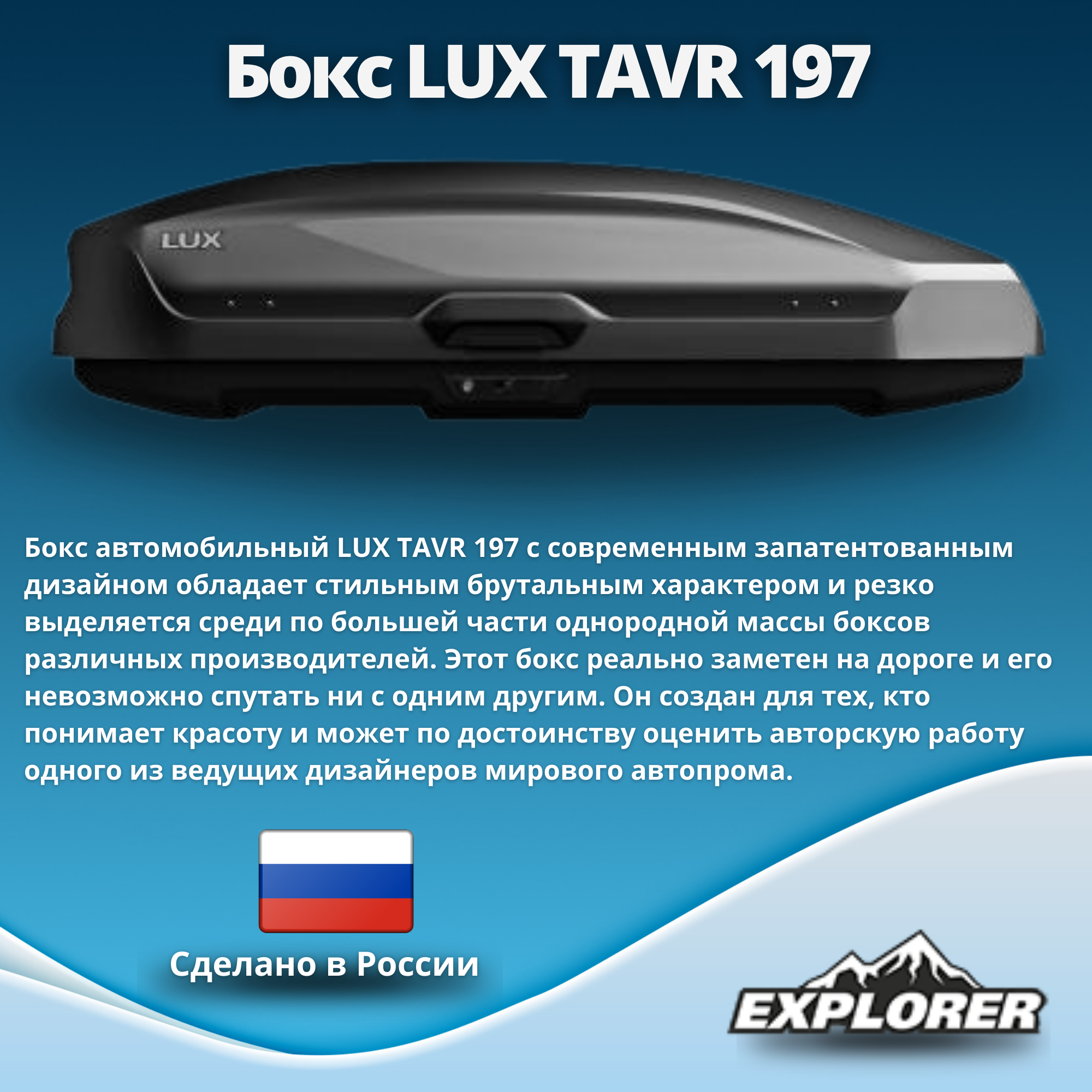 Автомобильный бокс на крышу LUX TAVR 197 (Люкс Тавр 197) черный матовый, 520 литров, с двусторонним открытием, 1970х890х400 мм. (арт. 791965)