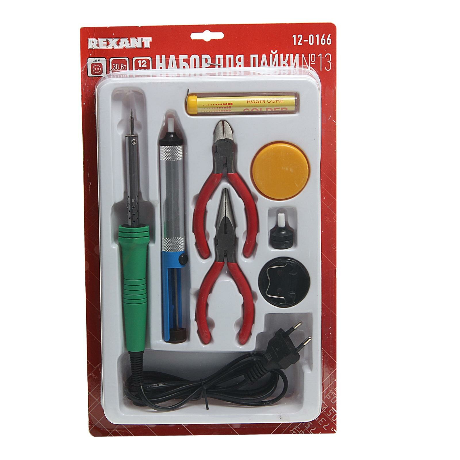 Купить 120166 REXANT Набор для пайки №13 (паяльник 30Вт,подставка,губка для удаления припоя,припой) REXANT
