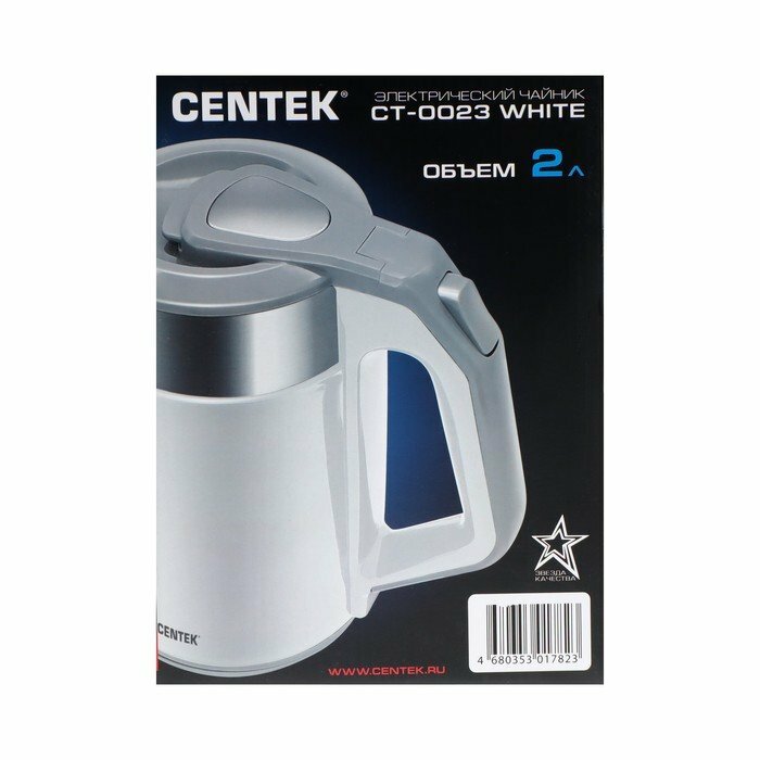 Чайник Centek CT-0023 White 2,0л, 2,0кВт, 2/слой .