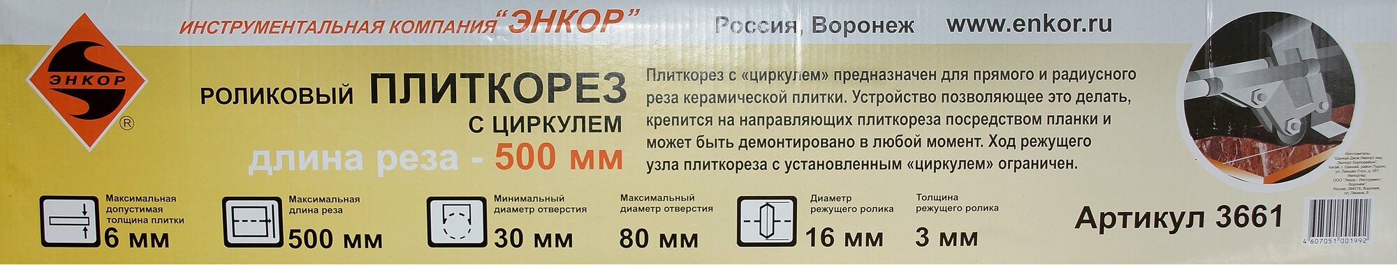 Ручной плиткорез с циркулем Энкор 500мм (3661) интересное: