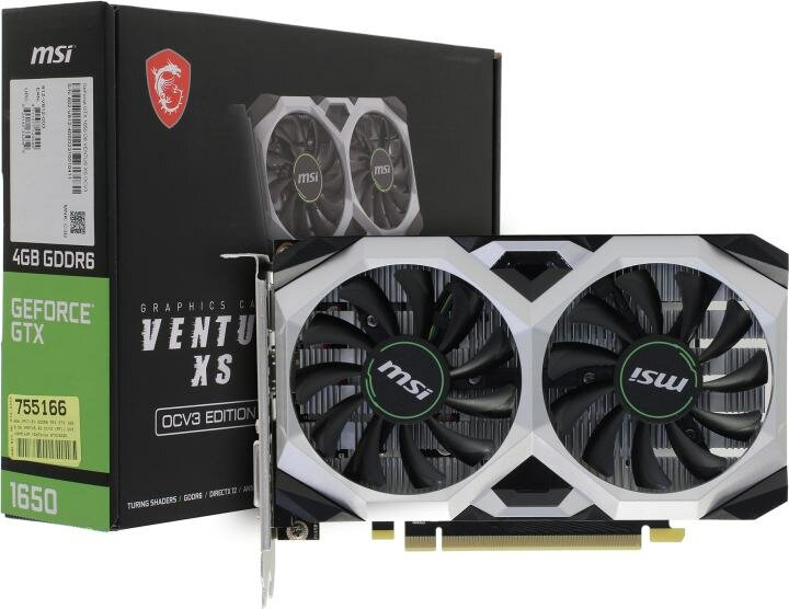Видеокарта MSI GeForce GTX1650, GTX 1650 D6 VENTUS XS, 4Gb DDR6, 128bit, HDMI/DP/DVI, 2xFan, RTL