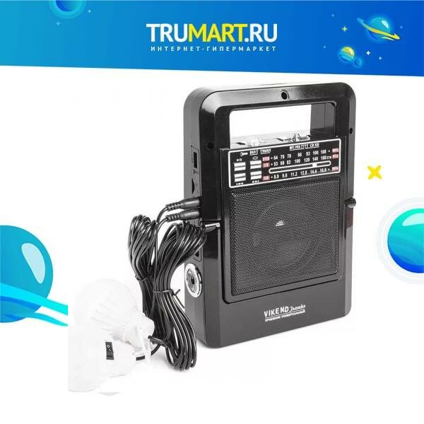 Радиоприемник VIKEND Traveler УКВ 64-108МГц В КВ акб1200мA бат.2*R20,USB/TF солн.бат 2*ламп