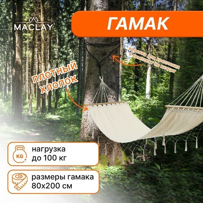 Гамак Maclay, размер 200 х 80 см, максимальная нагрузка 100 кг, цвет бежевый