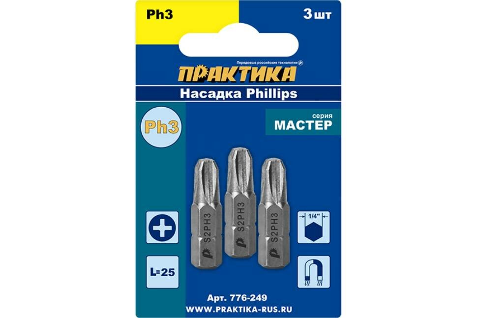 Биты PH-3-25 мм Мастер 3 шт в блистере ПРАКТИКА 776-249