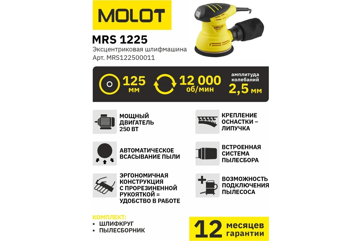 Эксцентриковая шлифмашина MOLOT MRS 1225 (250 Вт, 125 мм, 12000 об/мин) (MRS122500011)