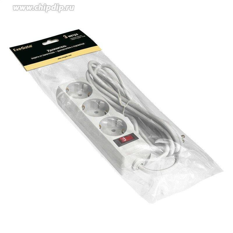 Сетевой удлинитель ExeGate (ec-3-3w White) (3м) ( 3 розетки ) (ex279354rus) .