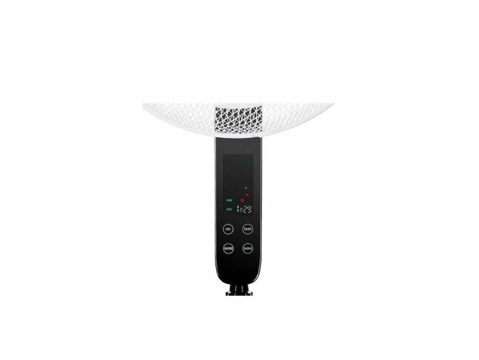 Сенсорный экран Возможность дистанционного управления с пульта Тяжёлая круглая «ножка», внушает надёжность, что вентилятор не упадёт, даже если его случайно задеть Поворотный механизм управляется через кнопку на экране/пульте, а не штекер сзади вращающего элемента, как на многих других вентиляторах Положение наклона и высоты фиксируются отдельными крутилками Возможность отключения подсветки экрана и пищания при нажатии кнопок на экране/пульте Наличие таймера до 8 часов 3 скоростных режима Упакован достаточно компактно, коробка небольшая |