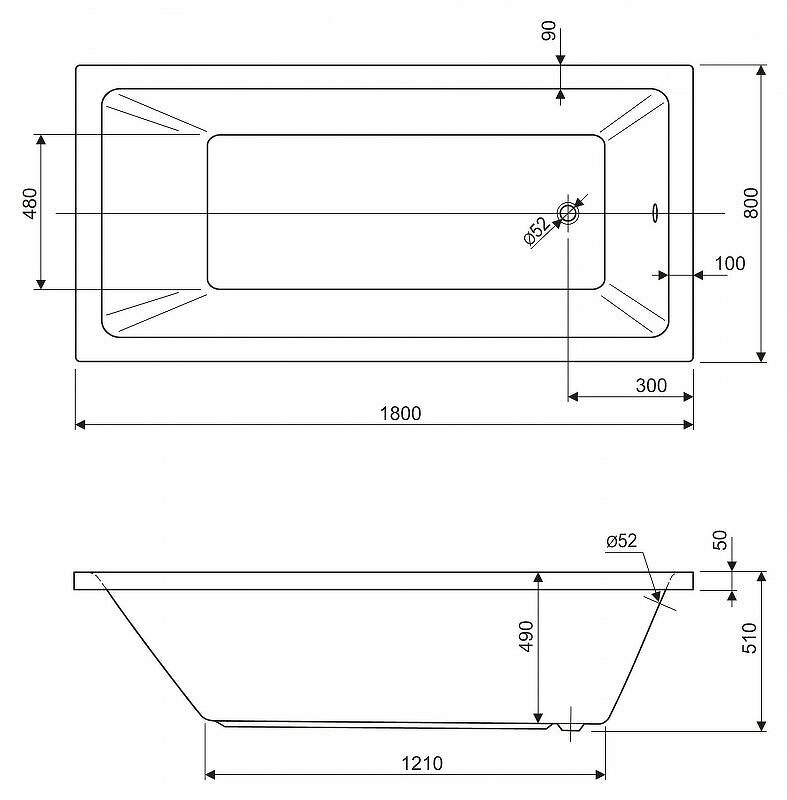 Акриловая ванна CEZARES PLANE SOLO-180-80-48-W37