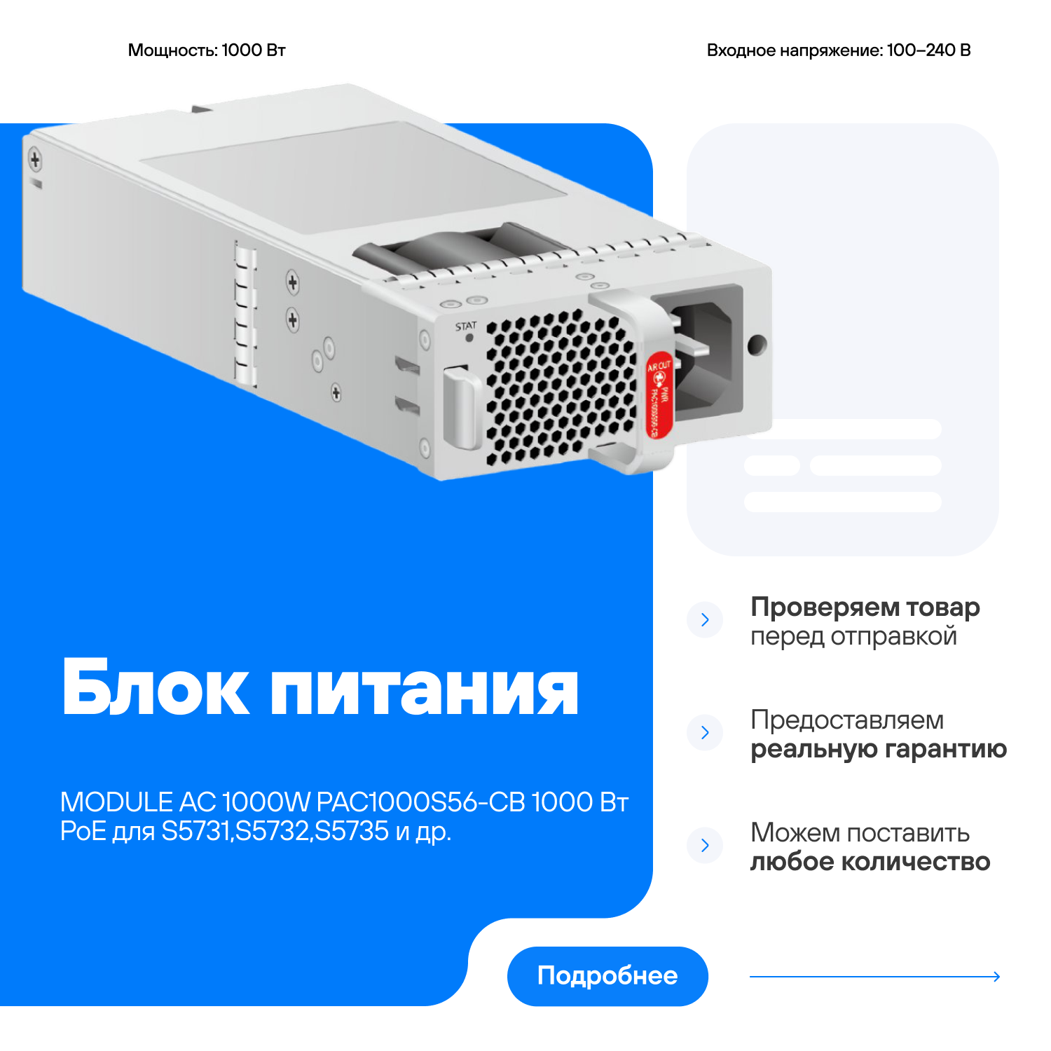 Блок питания Huawei MODULE AC 1000W PAC1000S56-CB 1000 Вт PoE интересное: