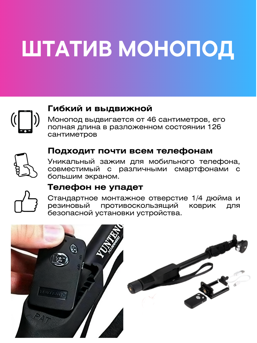 Монопод Yunteng селфи палка выдвижная . интересное: