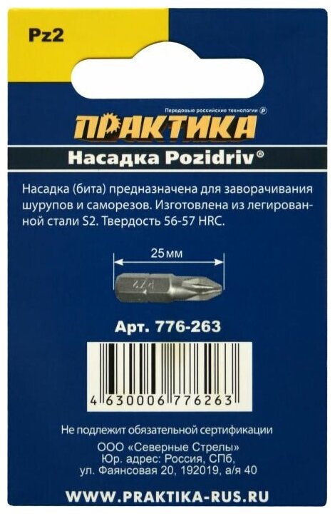 Биты PZ-2-25 мм Мастер 3 шт в блистере ПРАКТИКА 776-263