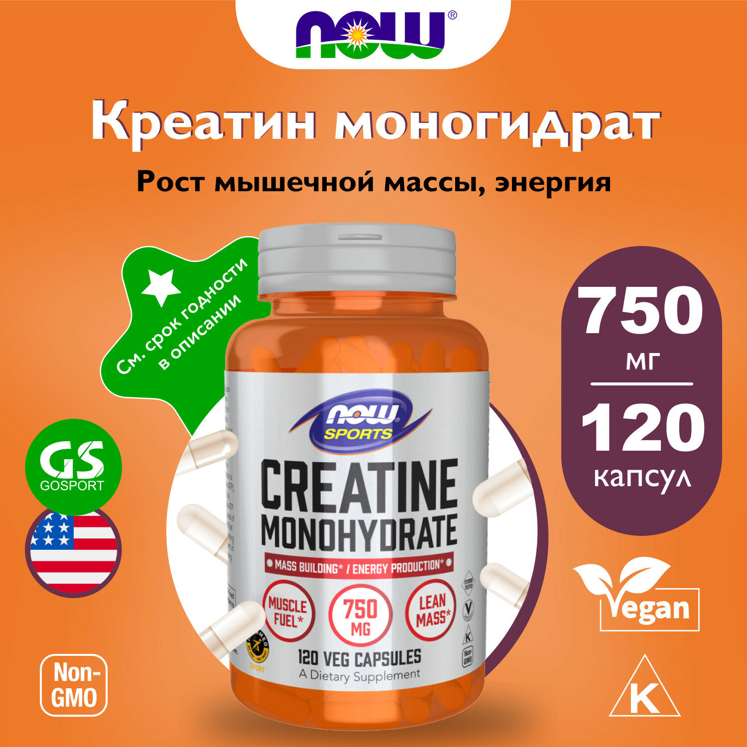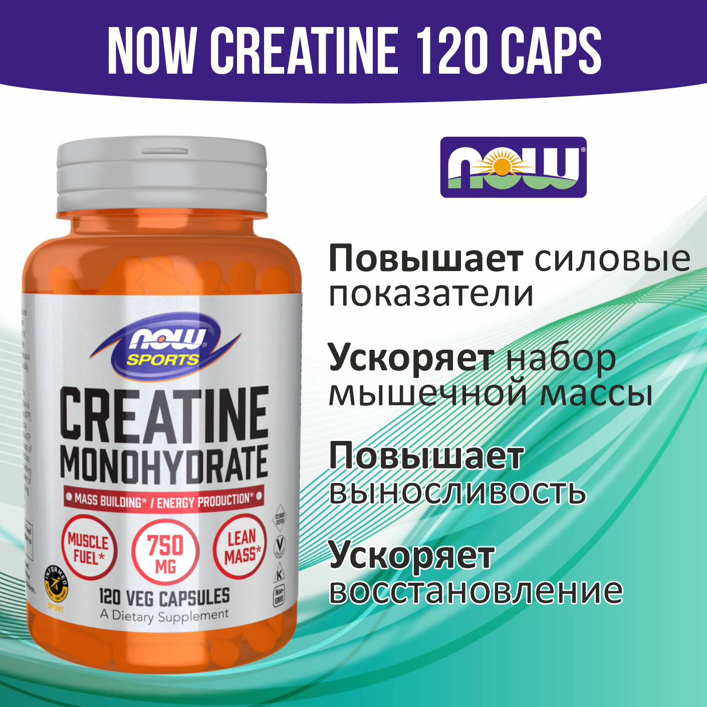 Купить NOW Creatine Monohydrate 750 mg (120 вег кап)
