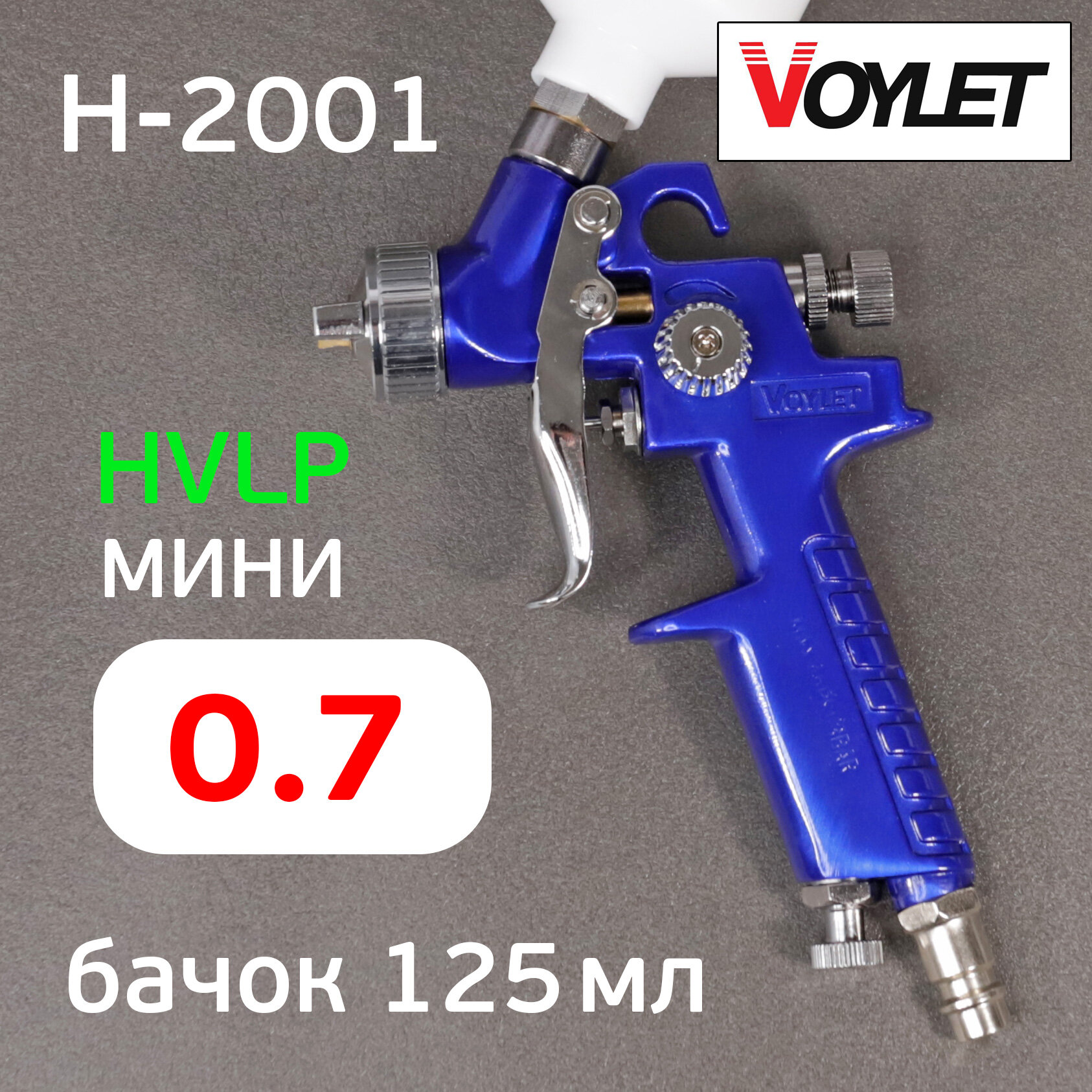 Краскопульт Voylet H-2001 HVLP, бачок 125 мл, сопло 0,7 мм