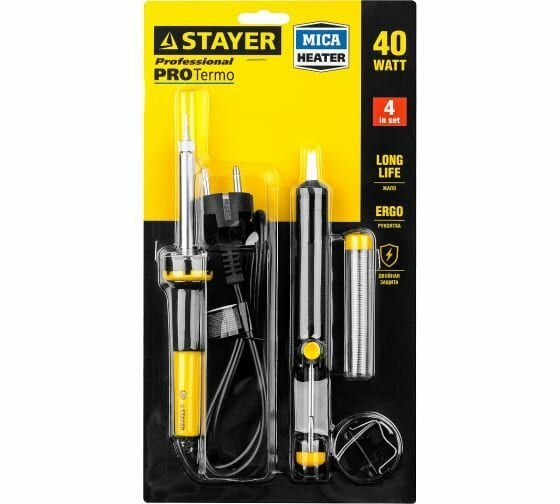 Электропаяльник в наборе STAYER PROTerm 40Вт, 55300-40 интересное: