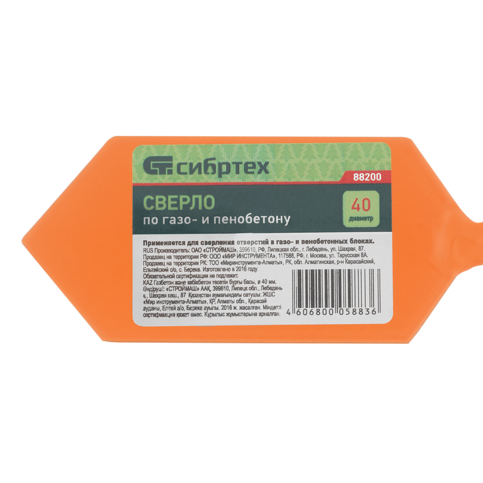 СИБРТЕХ Сверло по газо и пенобетону, D 40 мм Сибртех, ( 88200 ) интересное: