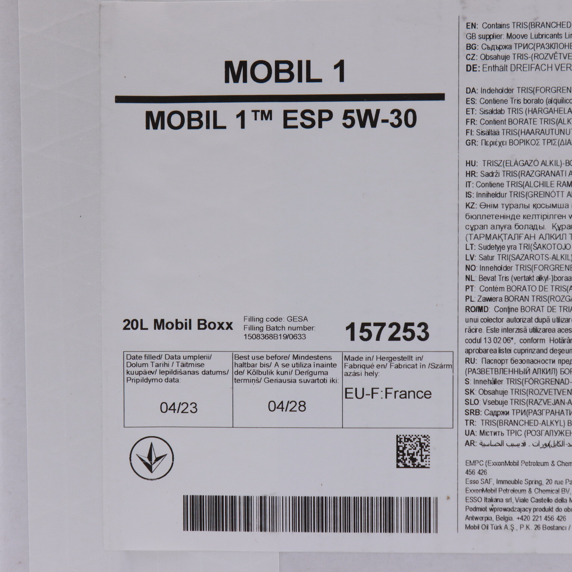 MOBIL 157757 MOBIL 1 ESP 5W30 , 12X1L