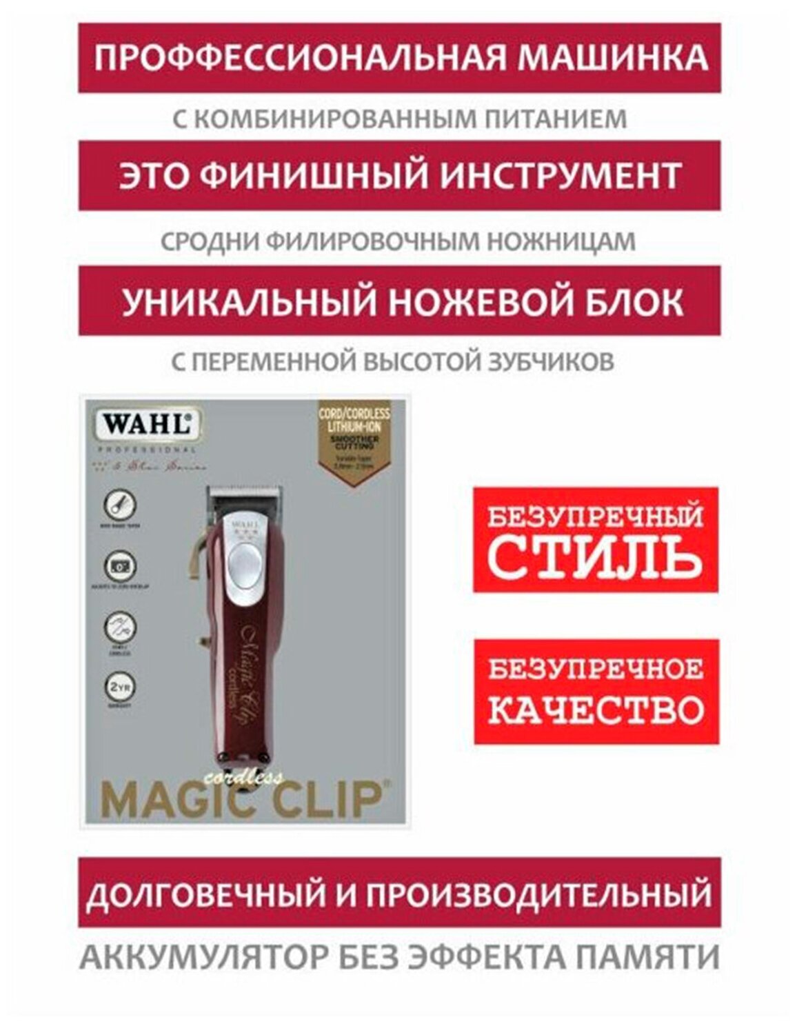 Машинка для стрижки Wahl 8148-2316H Magic Clip Cordless 5Stars; бордовый