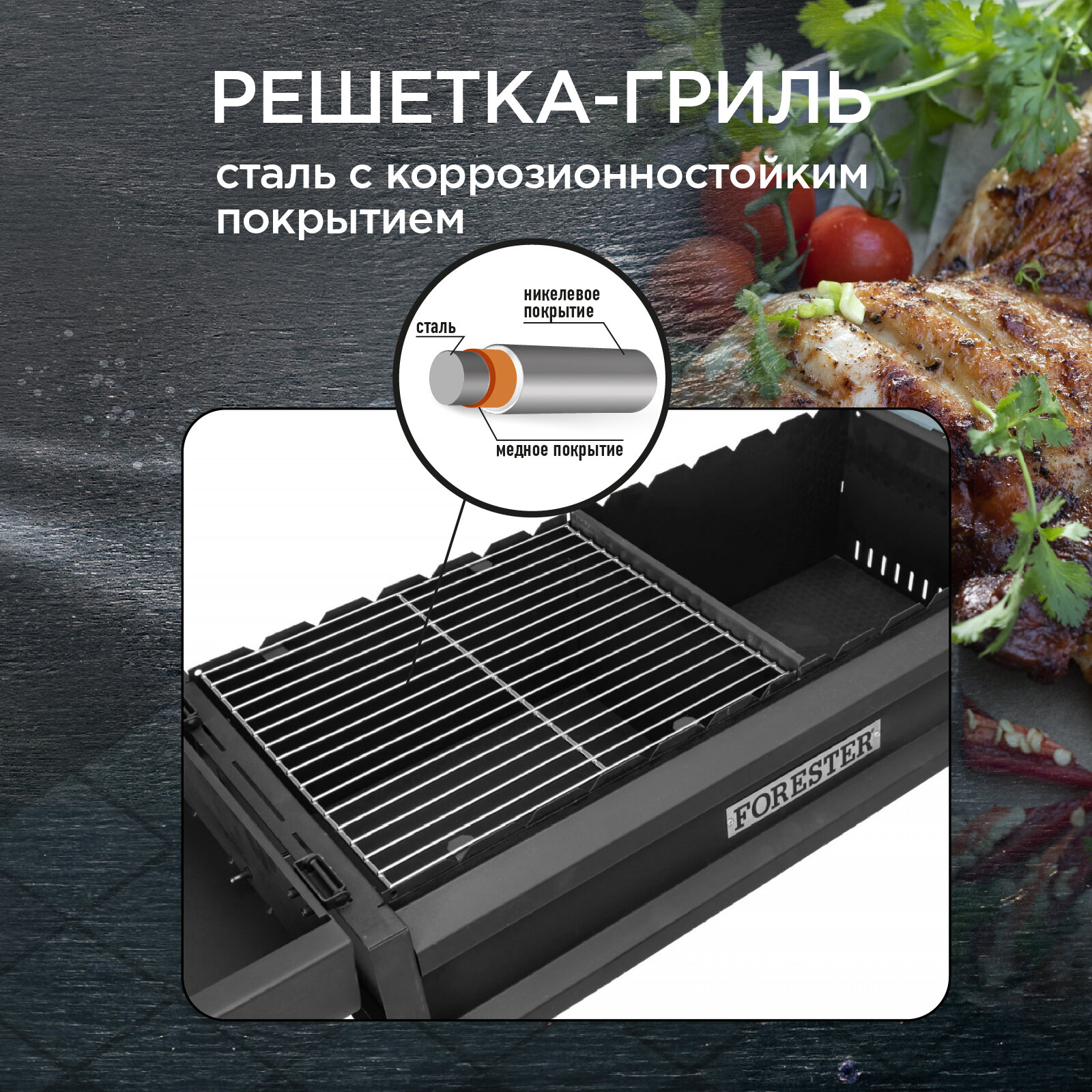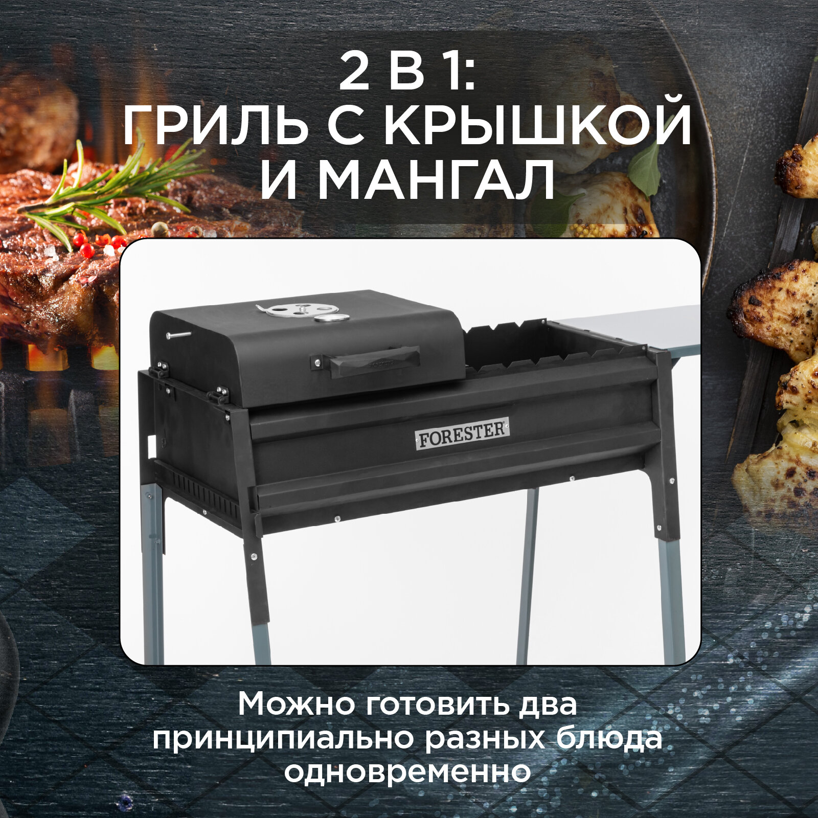 Мангал, Термо-гриль, Forester, с крышкой и столом, 90 х 116 см интересное: