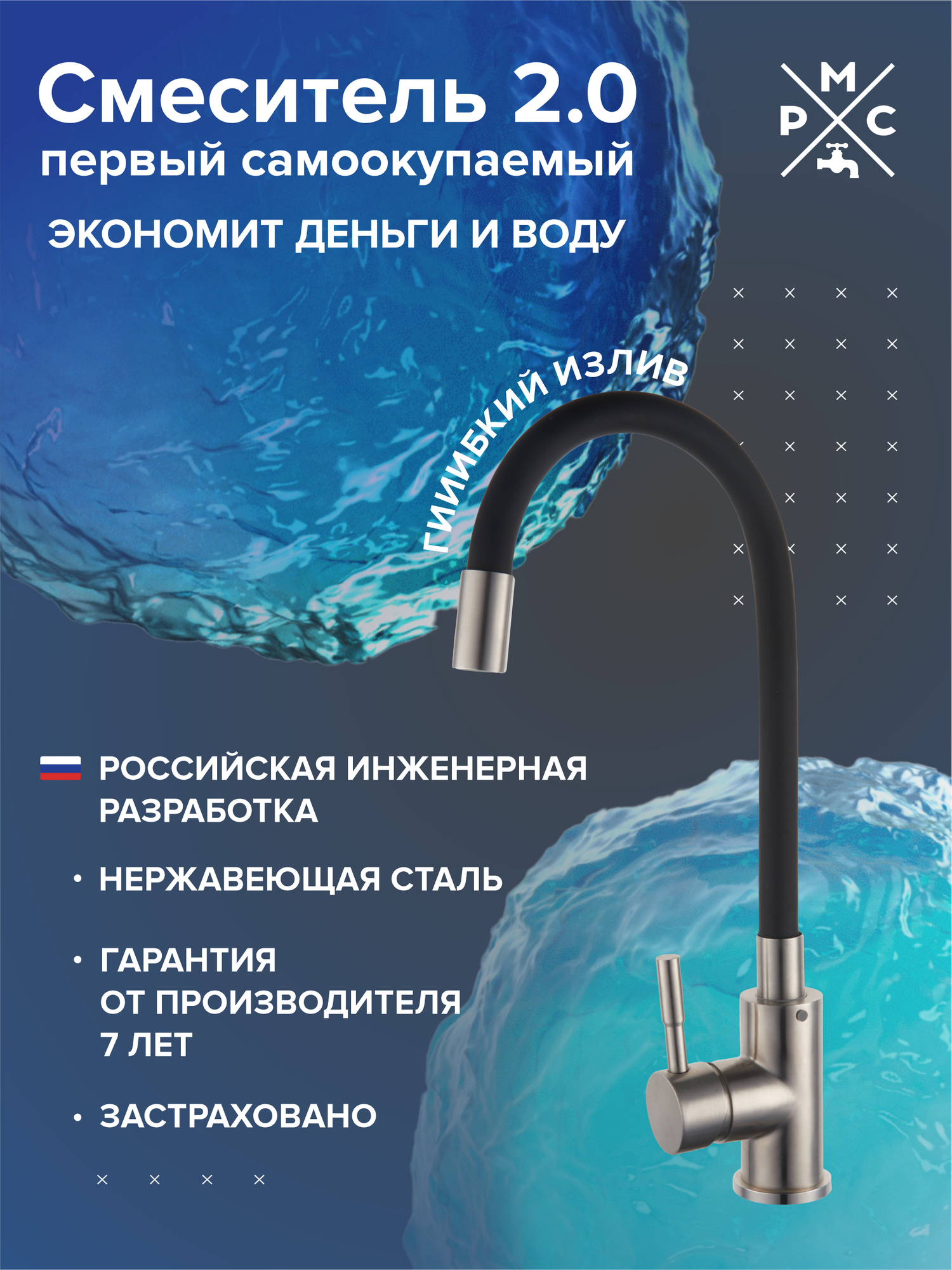 Смеситель для кухни РМС SUS124W-016F,нержавеющая сталь