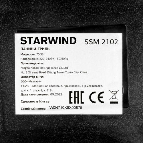 Сэндвичница Starwind SSM2102 750Вт черный SSM2102 .