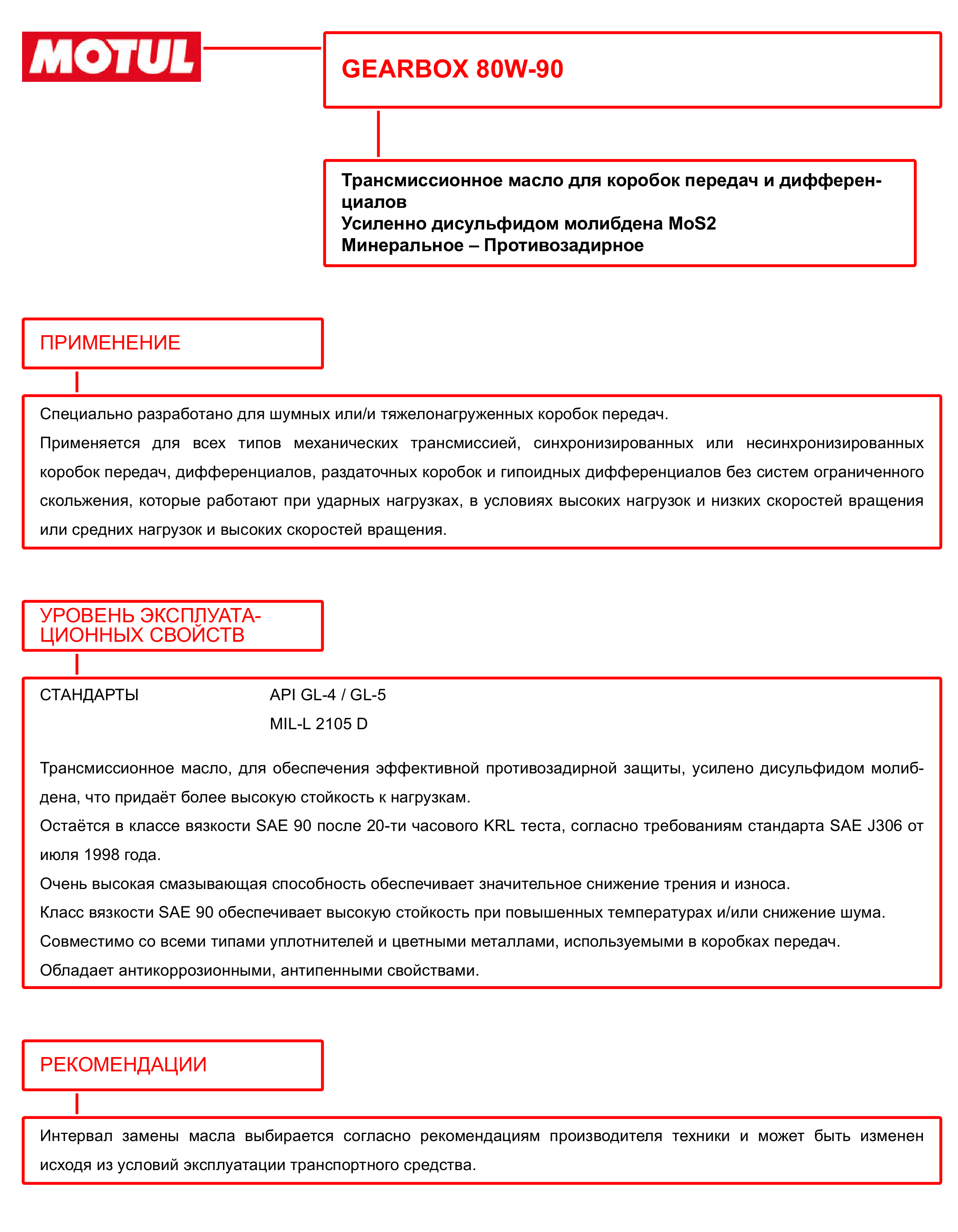 Motul 80w90 Gearbox (1l)_масло Трансмиссионное! Минapi Gl4/Gl 5, Mil-L-2105c MOTUL арт. 105787