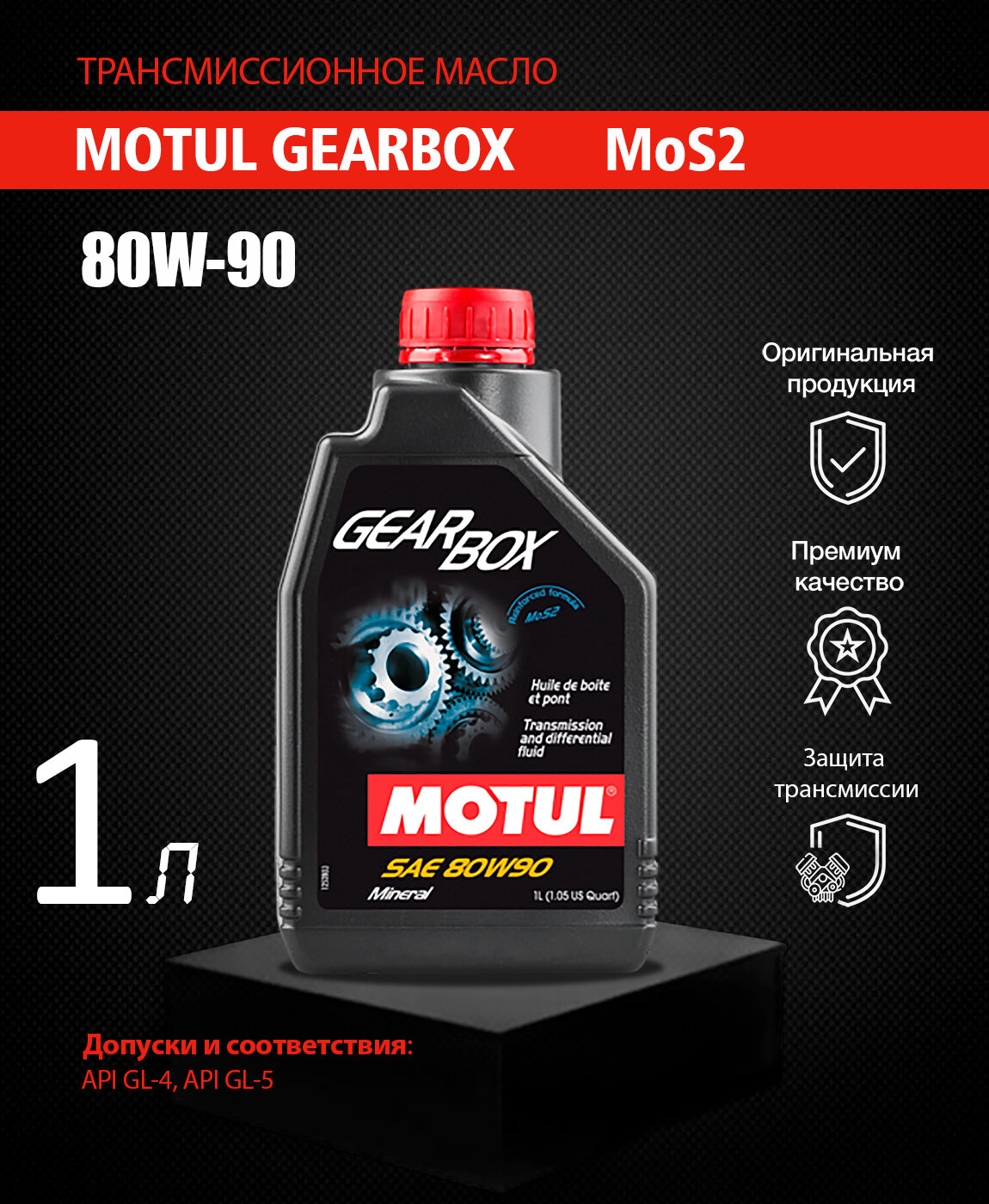 MOTUL 105787 MOTUL GEARBOX + MOS2 80W90 GL4/GL5 Масло трансмиссионное 1L