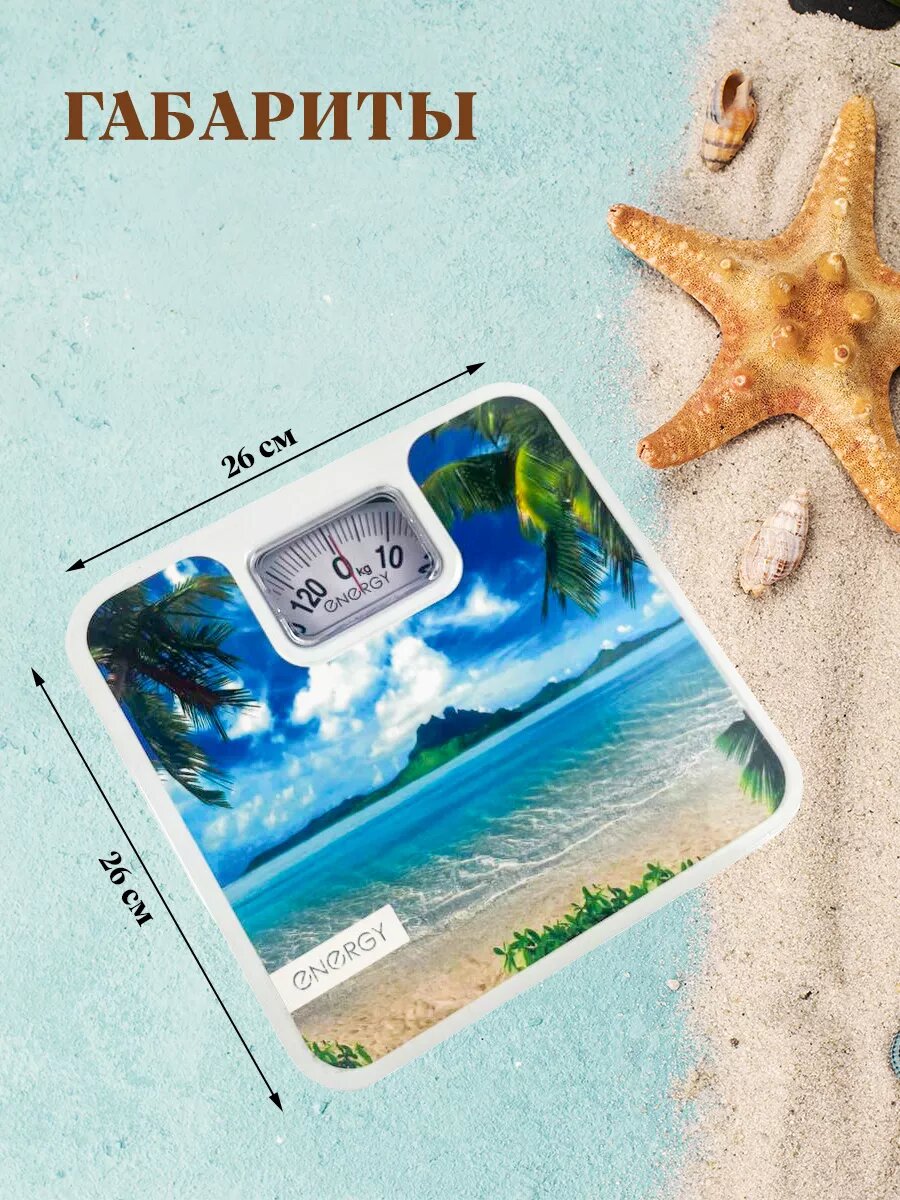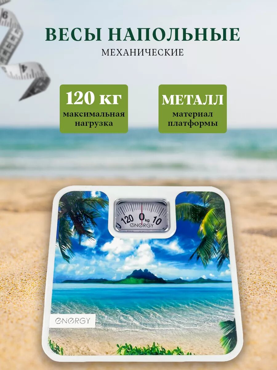 СохранитьВесы напольные ENERGY ENМ-409F, механические, до 120 кг, картинка "пляж" интересное: