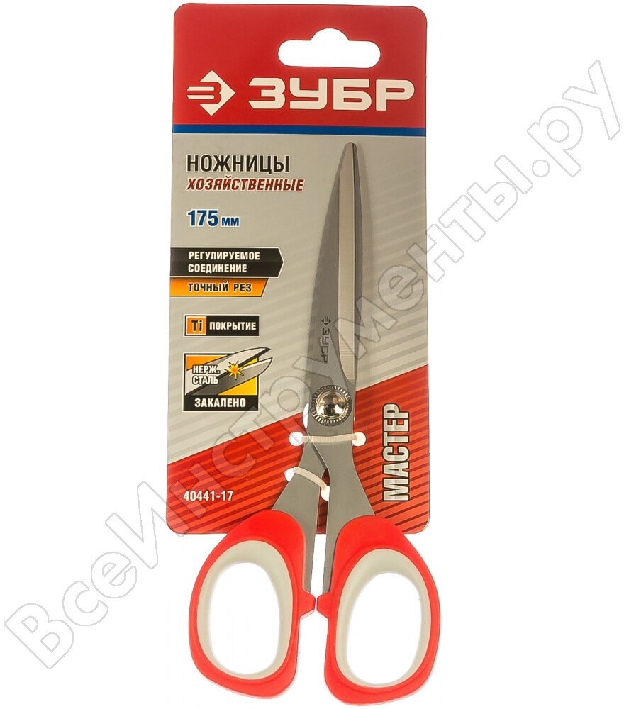 ЗУБР Ножницы ЗУБР "мастер" хозяйственные, двухкомпонентные ручки, 175мм, ( 40441-17 ) интересное:
