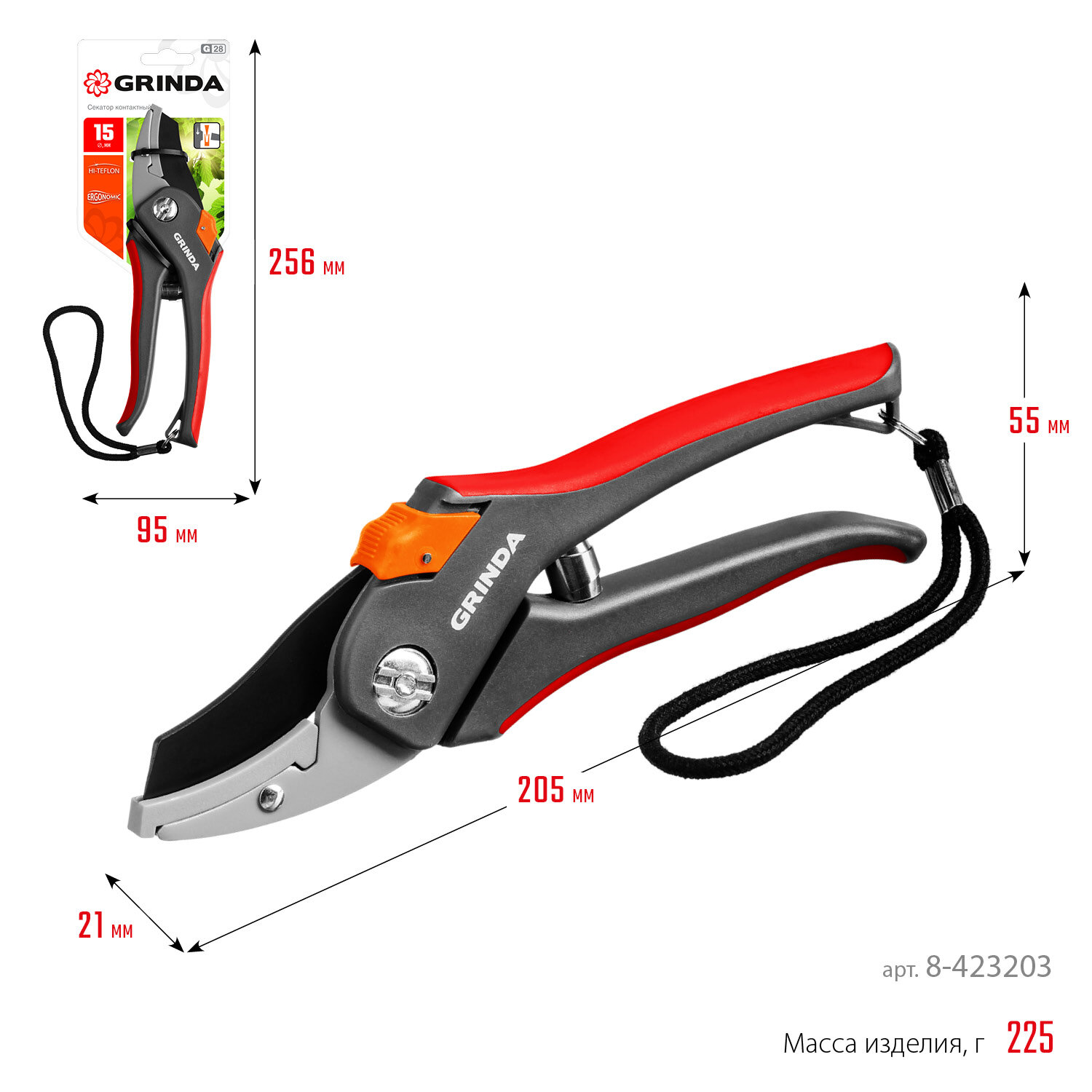 Контактный секатор GRINDA G-28 205 мм, с двухкомпонентными рукоятками (8-423203_z02)