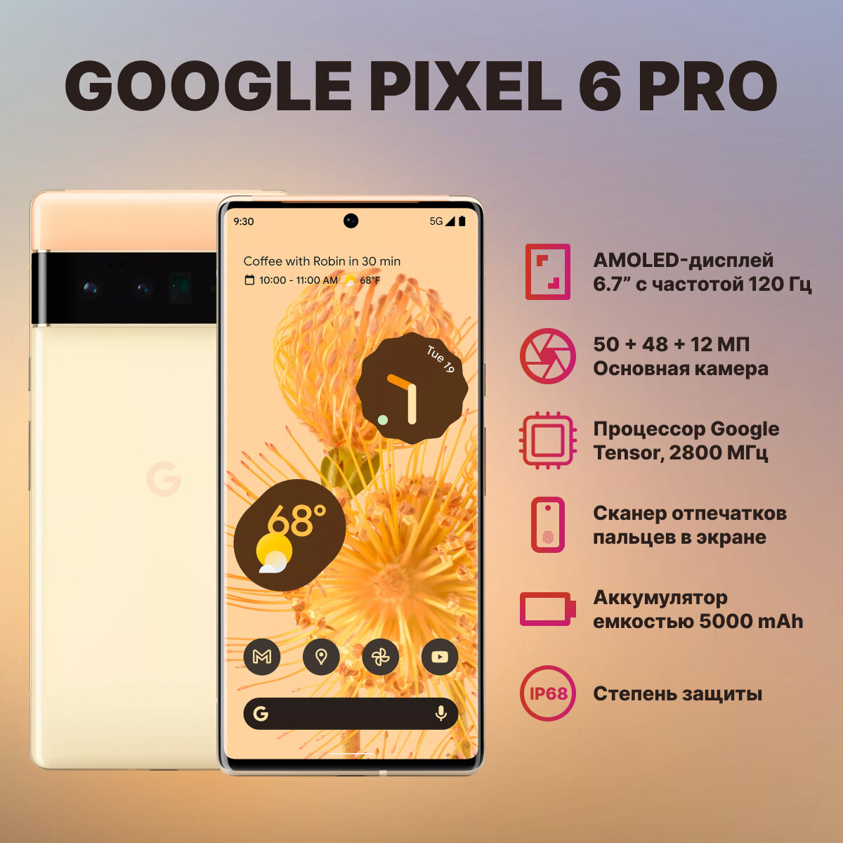 Смартфон Pixel 6 Pro 12/128 ГБ, sorta sunny