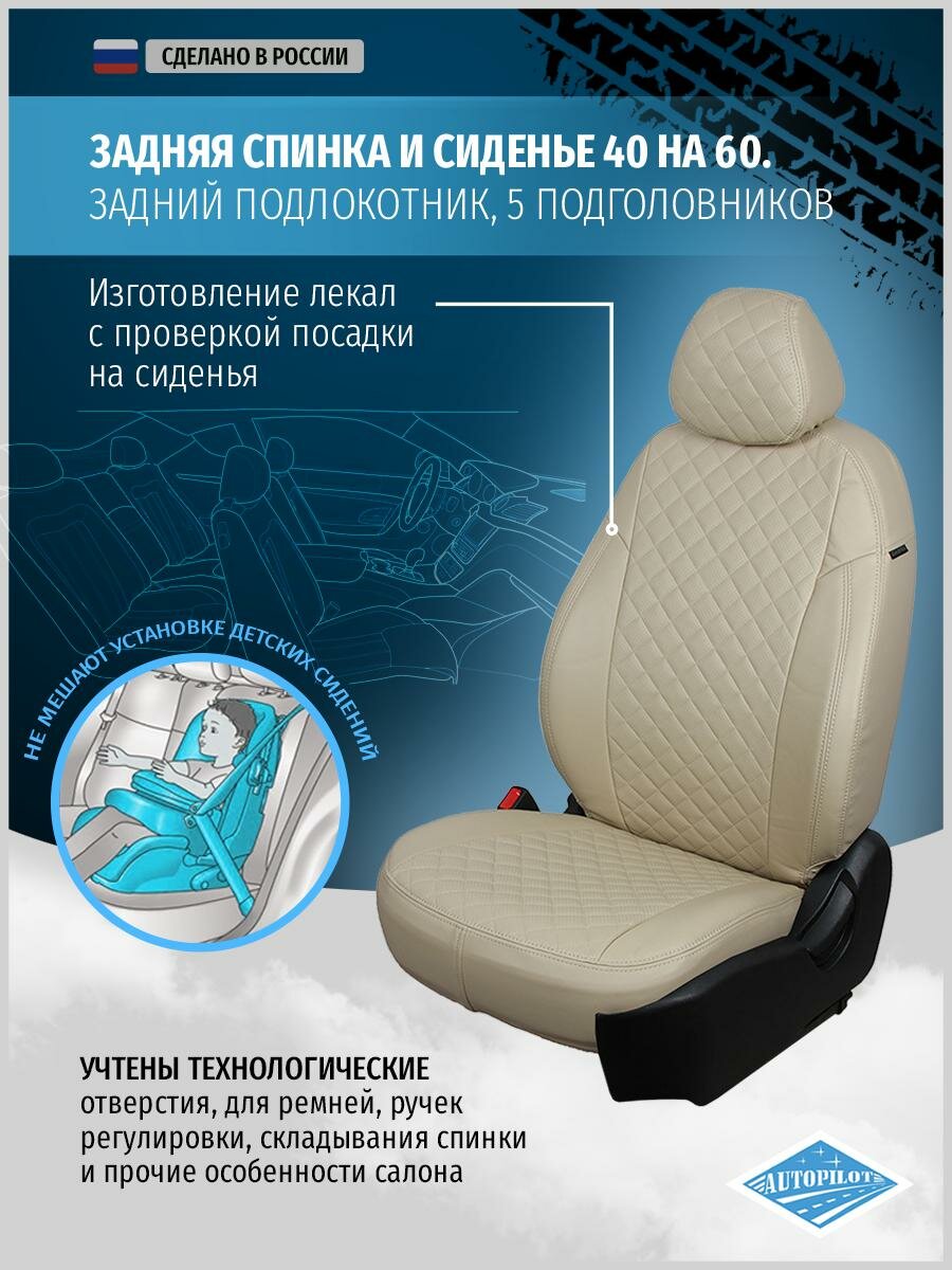 Чехлы на сиденья Nissan X-Trail T-31 (2007-2015), Экокожа Ромб, бежевый, Автопилот, ni-kht-t31-bebe-r