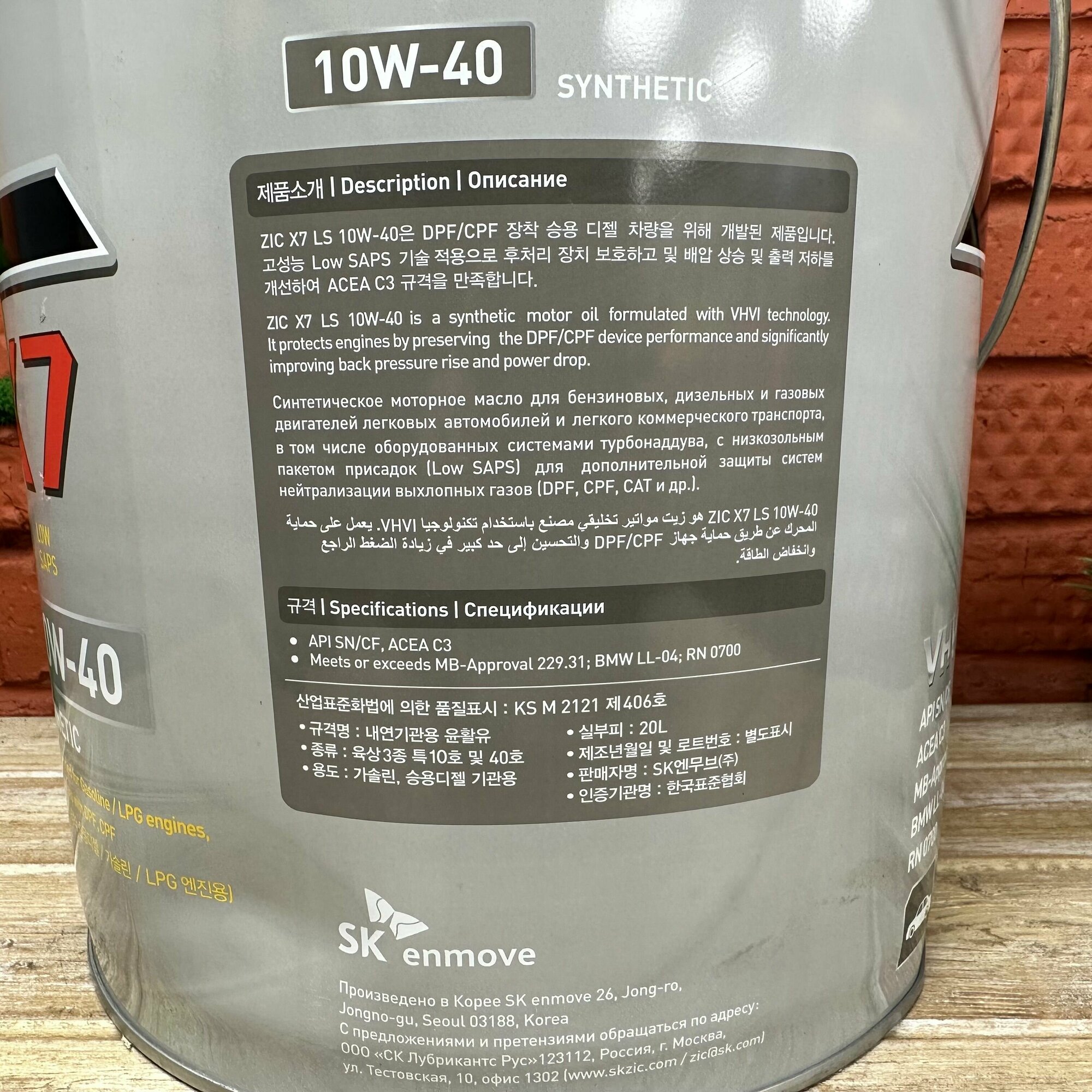 ZIC 192620 Масло моторное ZIC X7 LS 10W-40 синтетическое 20 л 192620