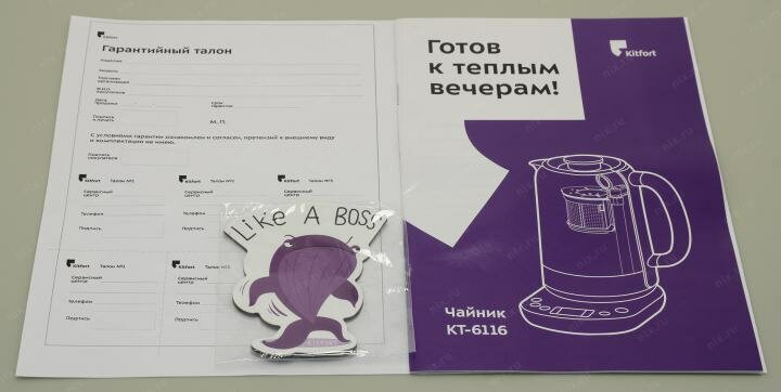 | Плюсы: | Сегодня получил посылку - Чайник Kitfort KT-6116. Раскрыл-приятно удивился. Вверху лежал приветственный магнит. Мелочь, а приятно. Что касается самого чайника. Прежде чем купить, читал отзывы. По ним и выбирал. НО....., когда достал из коробки это чудо! Очень достойный дизайн. Принято сравнивать с зарубежными образцами, ничуть не хуже если быть скромным. Приятное и понятное меню, Не знаю как он в работе, уверен, что не смажет первое впечатление. Что касается цены. Да не 800-900 рублей за нагревательный прибор, НО...это изыск на кухне. А красивые вещи дешево не стоят. Спасибо коллективу дизайнеров и производству за доставленное удовольствие. |