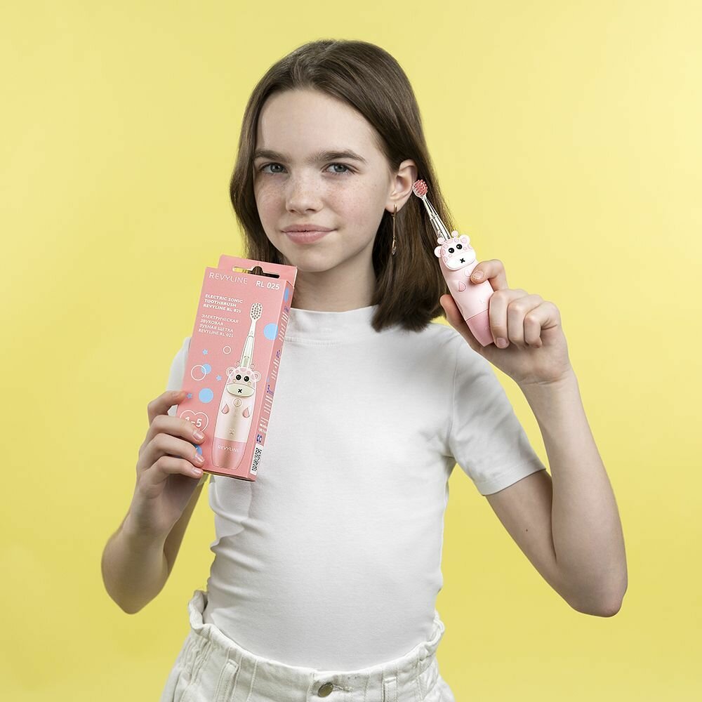 Электрическая звуковая зубная щетка Revyline 025, для детей, розовый