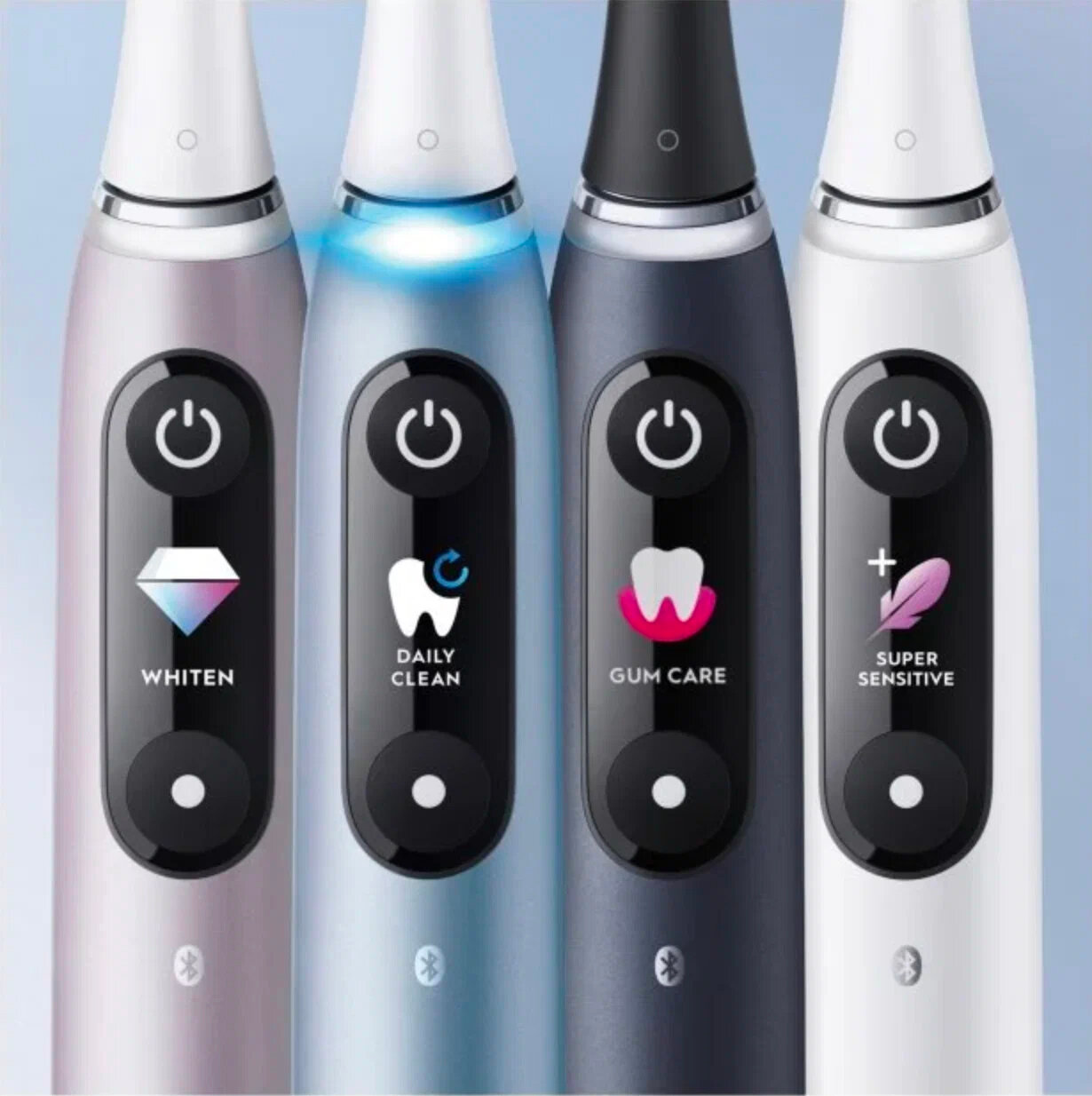Красивый цветной дисплей Разные режимы Беспроводная зарядка Дорожный футляр с возможностью зарядки Программа по уходу за полостью рта и рекомендациями по чистке зубов |