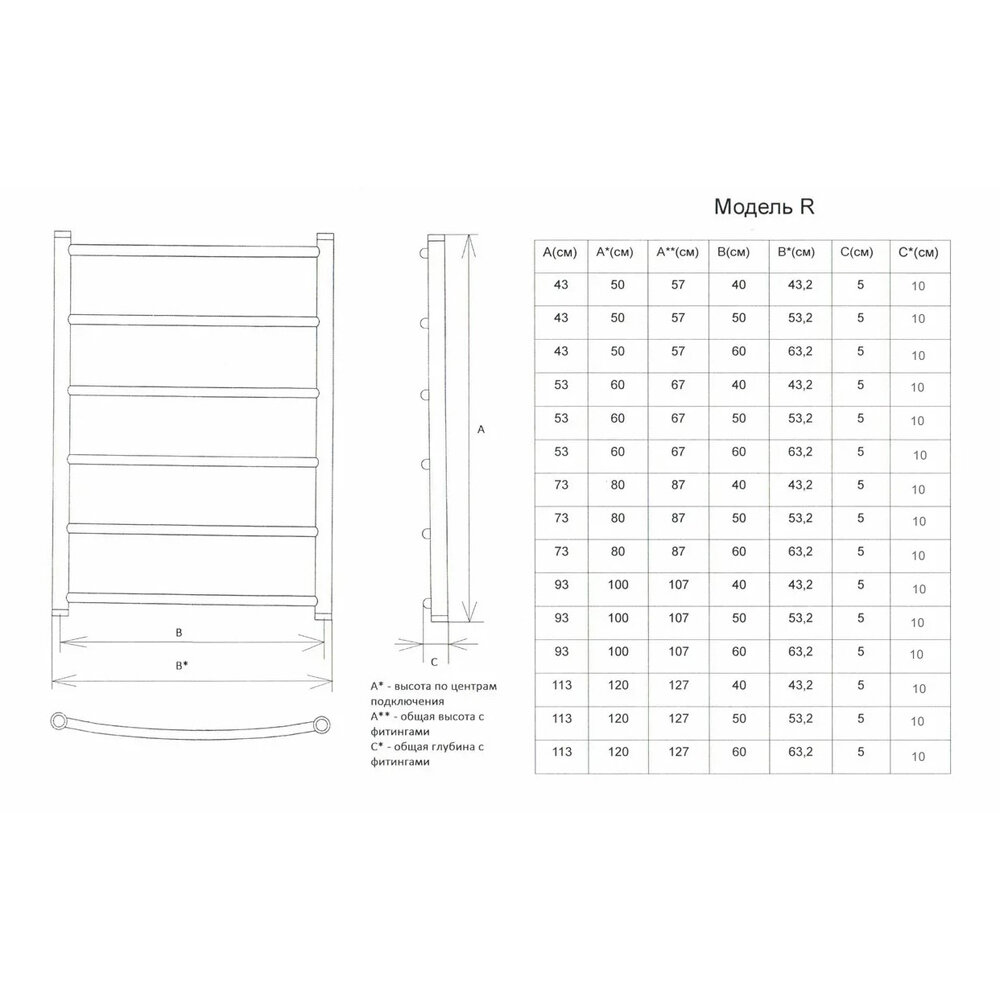 Полотенцесушитель универсальный Двин "R" 60*50 1"-1/2 нержавеющая сталь