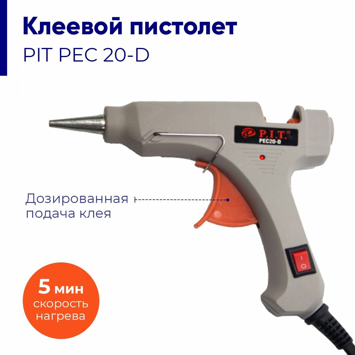 Пистолет клеевой 20 Вт PEC20-D (диаметр стержня 7мм, кабель 1 м, стержень в подарок)P.I.T.