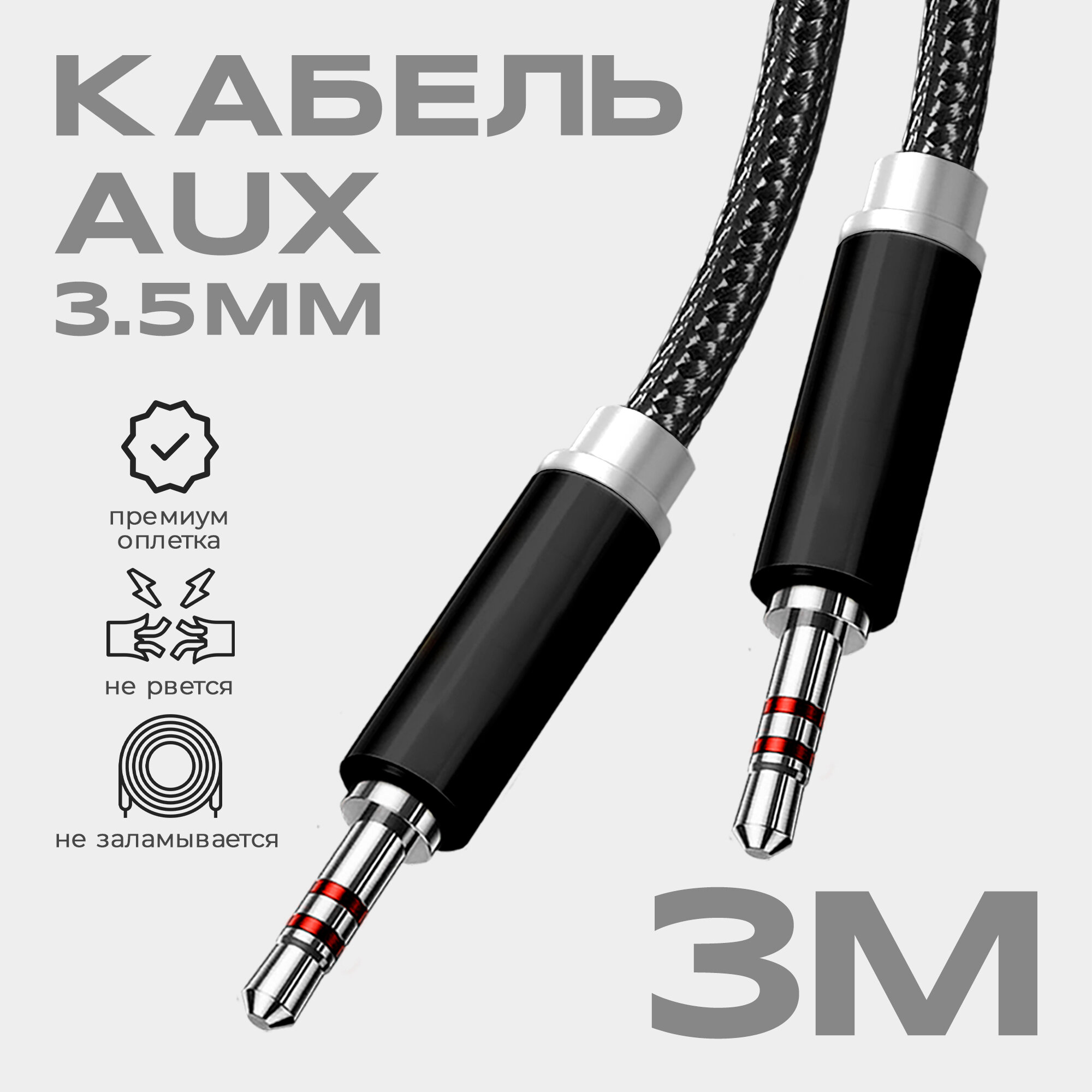 Кабель AUX 3.5mm в тканевой оплетке WALKER CA-520, mini jack, двусторонний, 3м, прямой штекер, черный / акустический шнур на телефон, аудио автомобиль