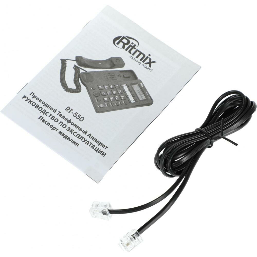 Проводные телефоны RITMIX Проводной телефон Ritmix RT-550, дисплей, телефонная книга, однокнопочный набор, AUX, черный